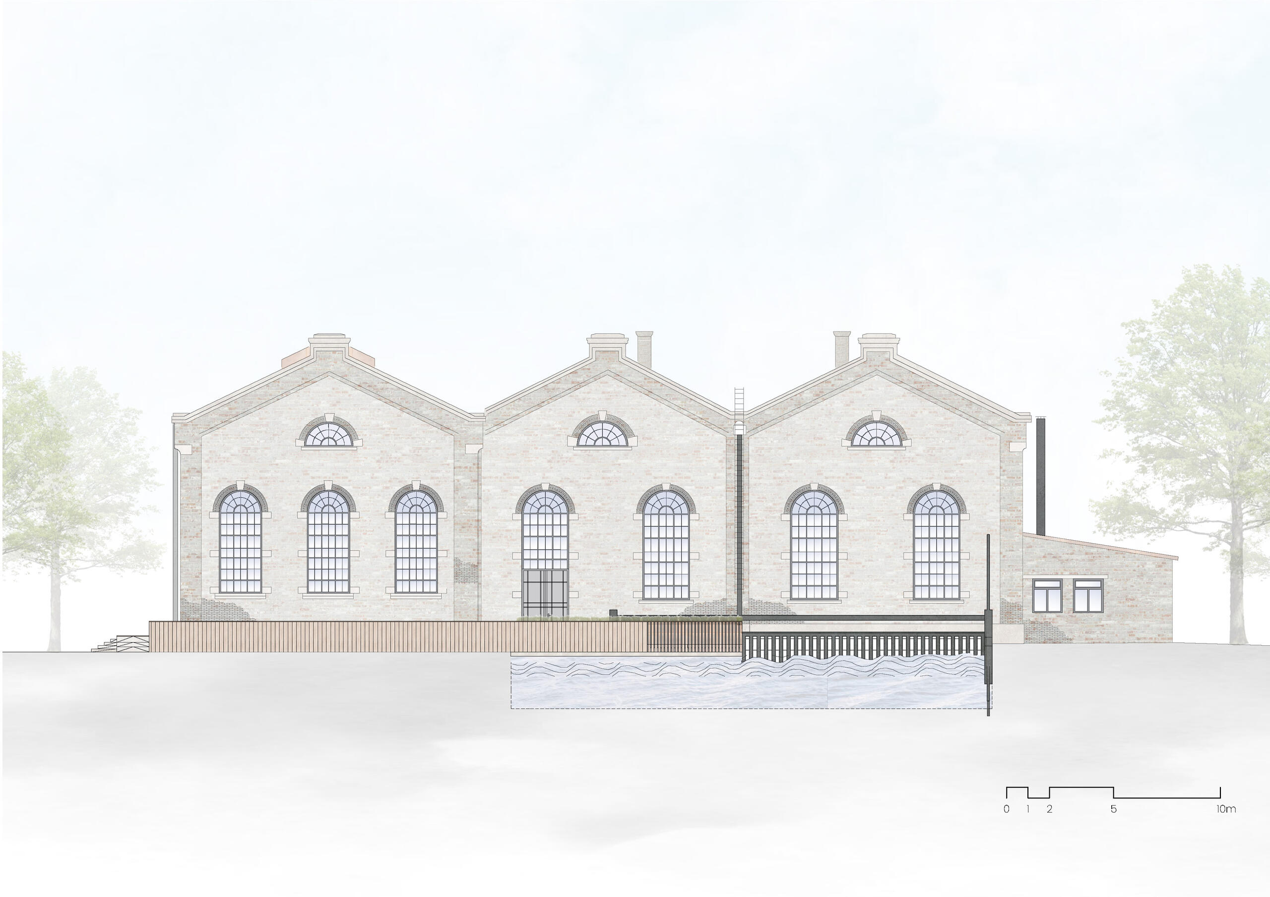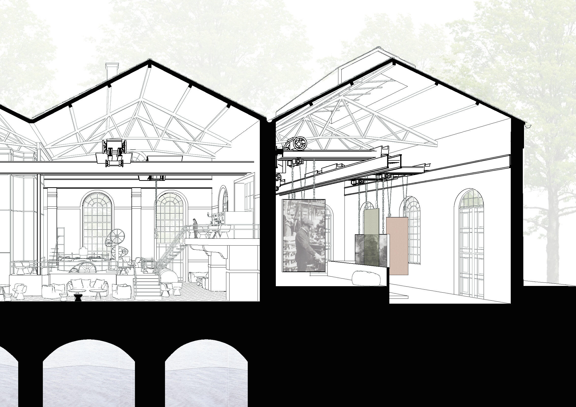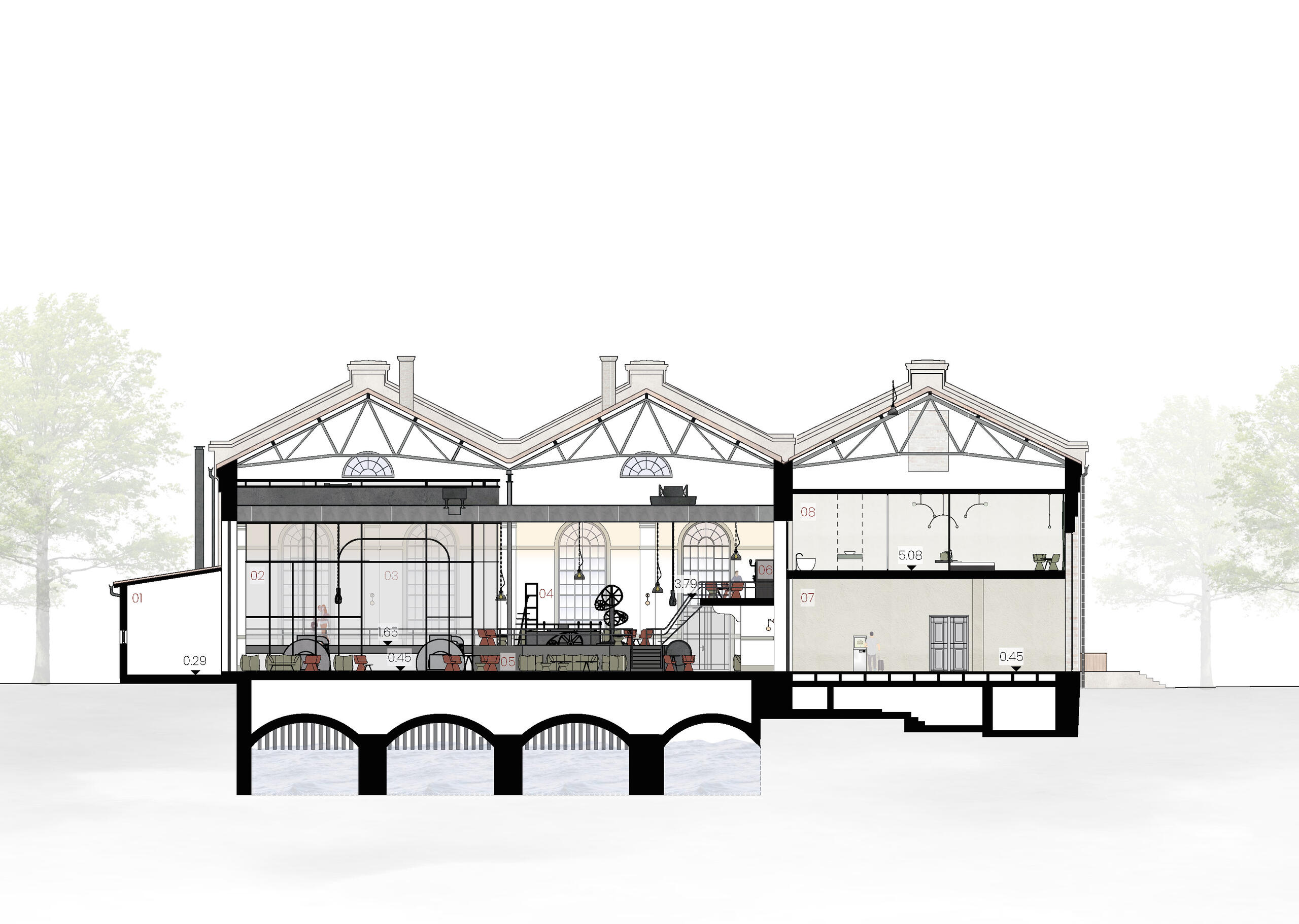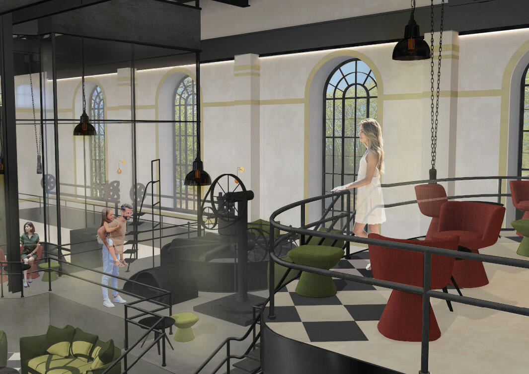 Konzept: Cafébetrieb kombiniert mit der Atmosphäre eines Wasserkraftwerks