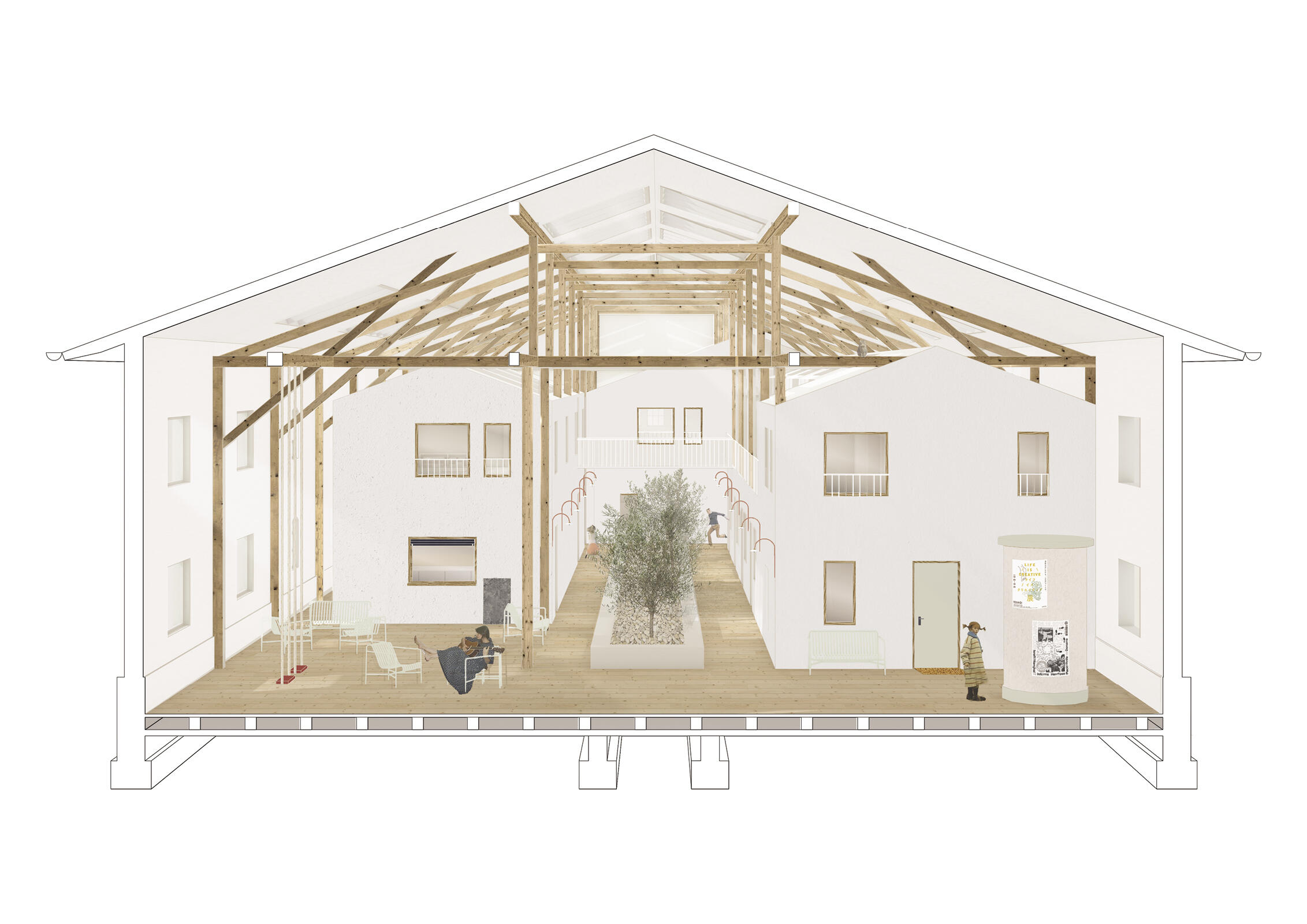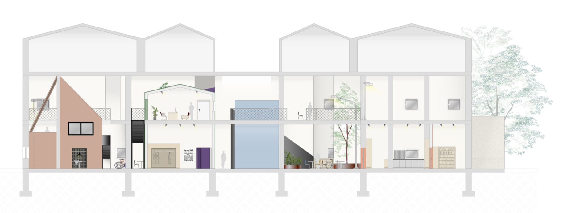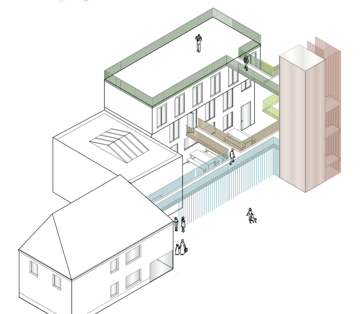 Genau das soll mit dem Entwurfsprojekt HUB entstehen. Ein Ort des Austausches und der Kommunikation nicht nur unter Geflüchteten, sondern auch für und mit den Bewohnern der Stadt München. Ein Ort für eine gemeinsame Tasse Tee und ein Kennenlernen zum einen, aber auch ein Ort der Hilfe für alle, eine Art niedrigschwellige Alternative zum Gang zum Amt.