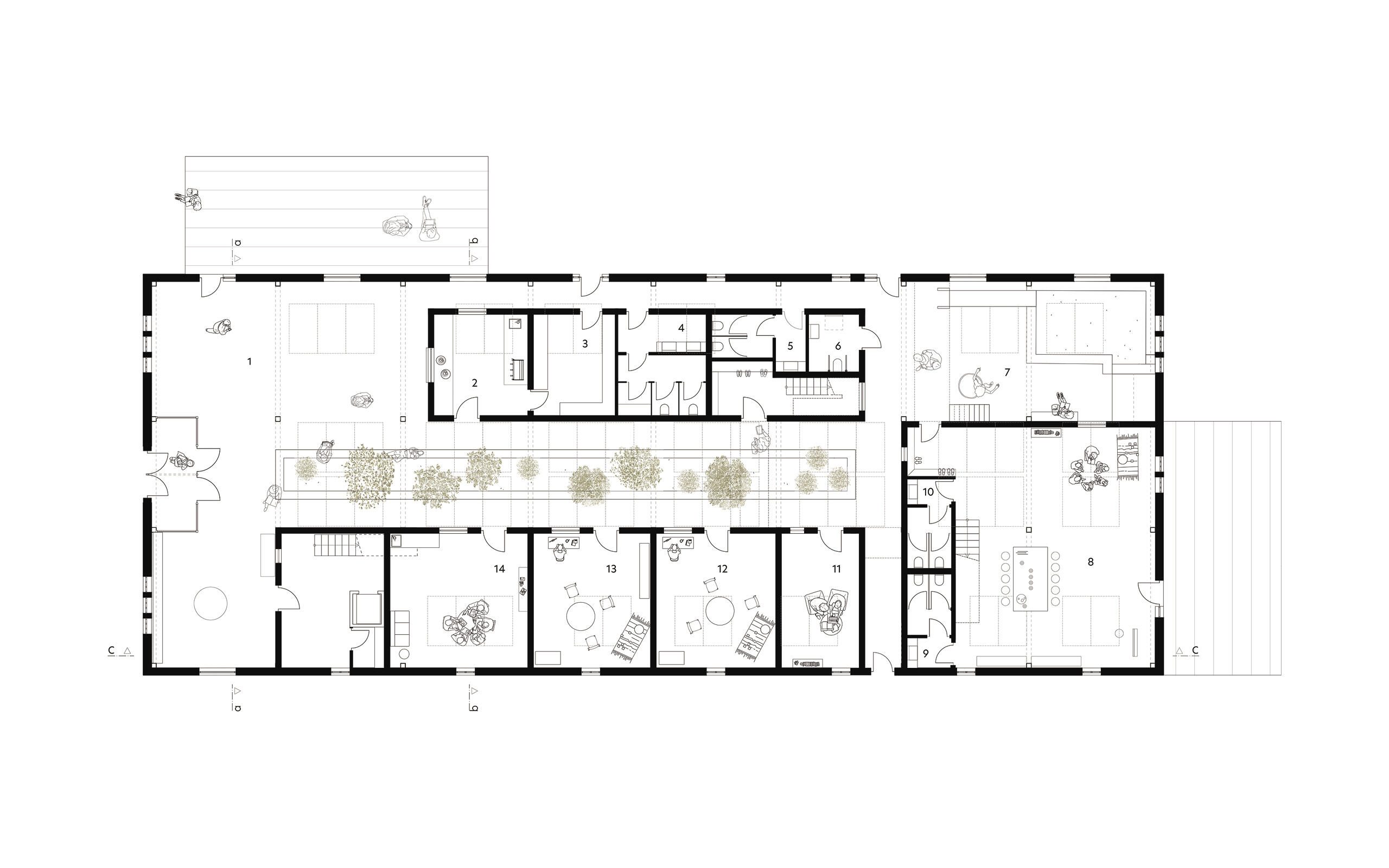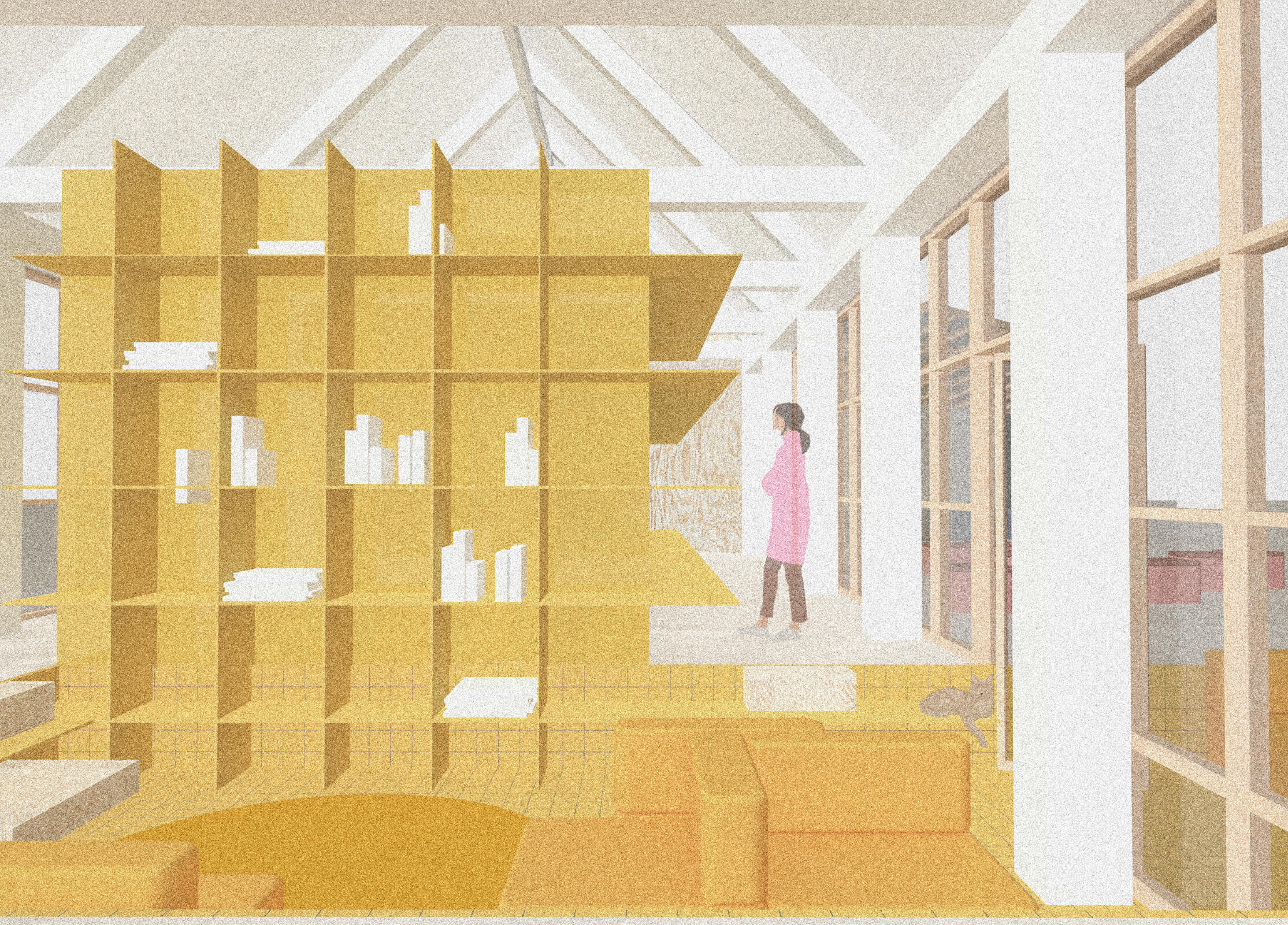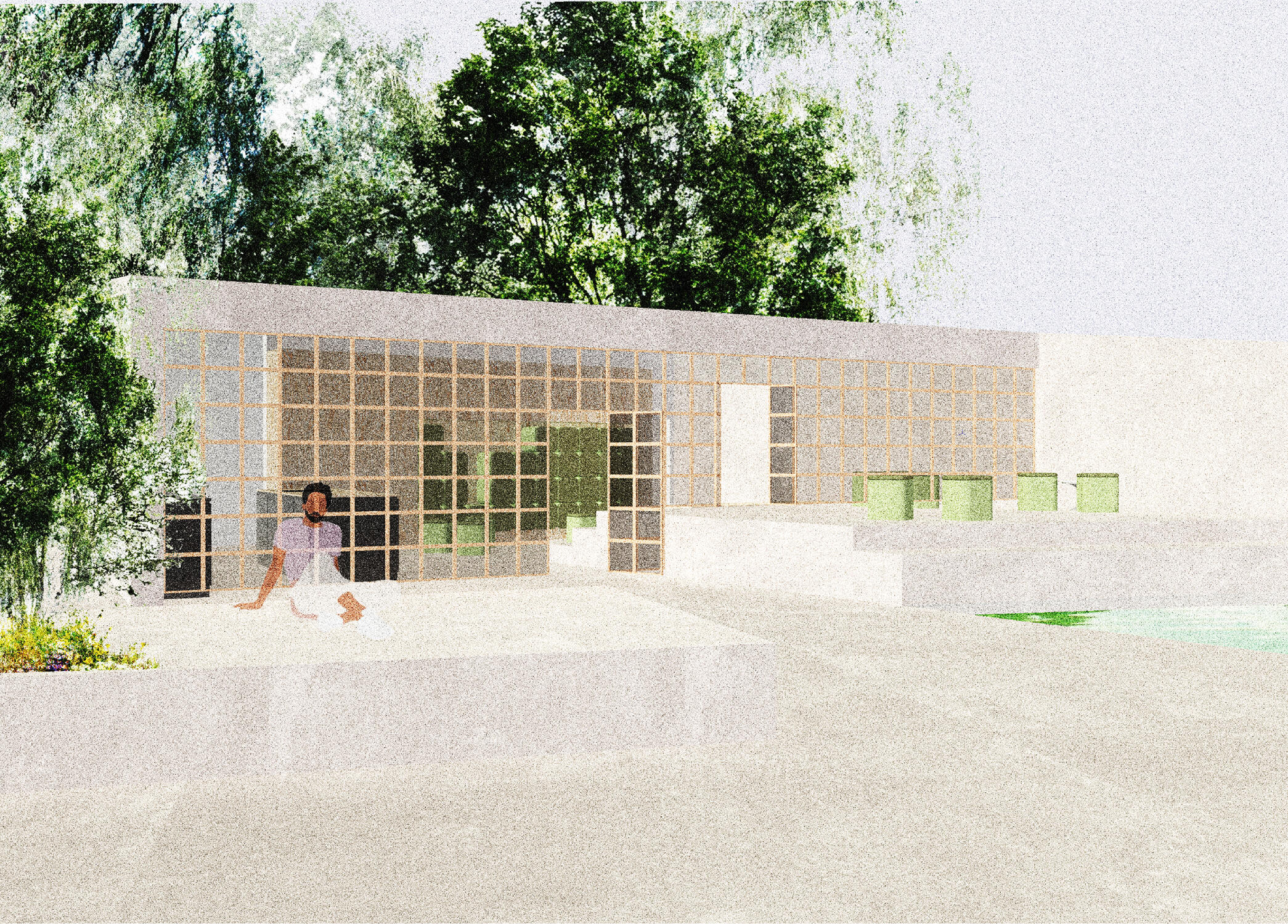 Genau das soll mit dem Entwurfsprojekt HUB entstehen. Ein Ort des Austausches und der Kommunikation nicht nur unter Geflüchteten, sondern auch für und mit den Bewohnern der Stadt München. Ein Ort für eine gemeinsame Tasse Tee und ein Kennenlernen zum einen, aber auch ein Ort der Hilfe für alle, eine Art niedrigschwellige Alternative zum Gang zum Amt.