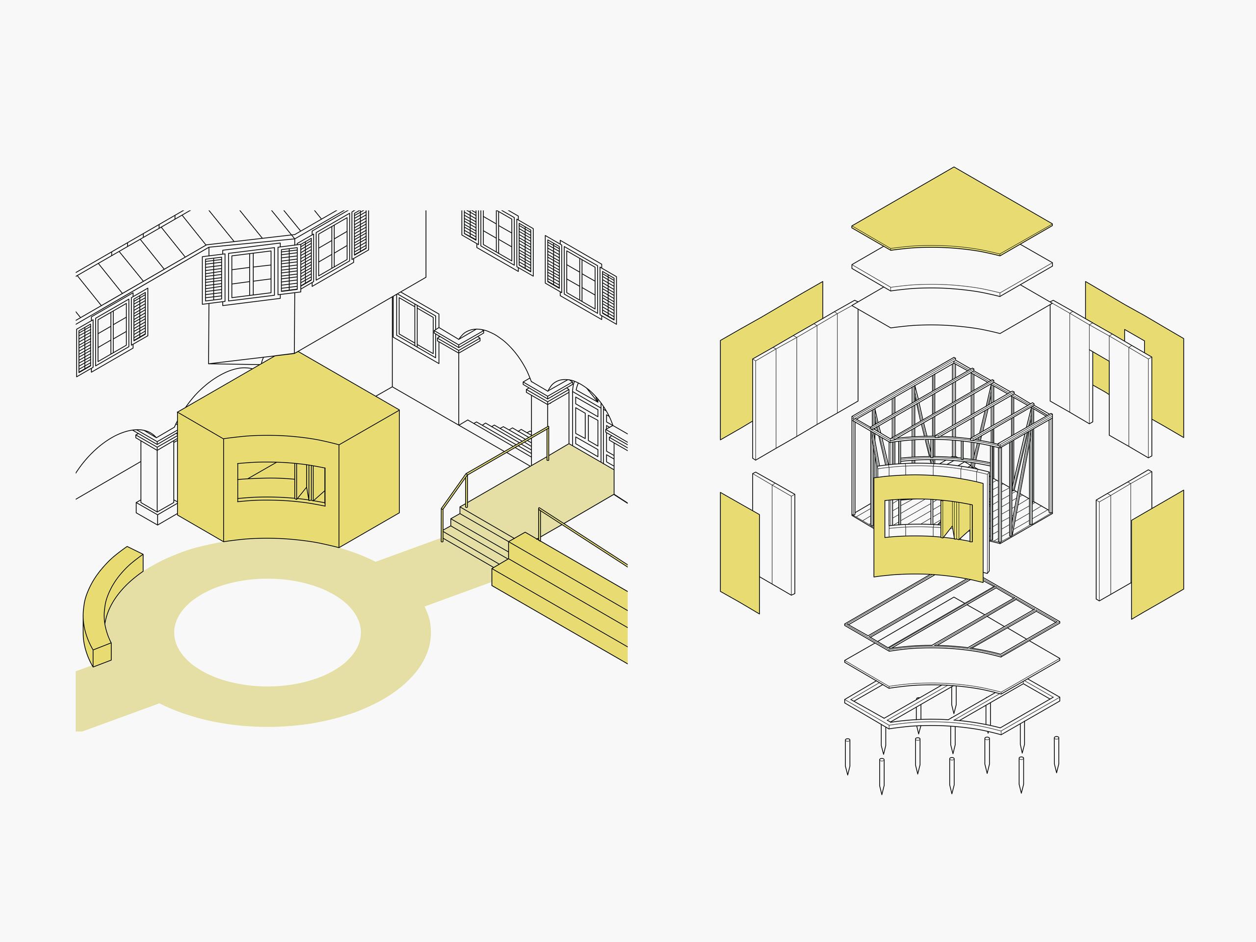 Im Umgang mit dem historischen Bestandsgebäude soll ein Spannungsfeld entstehen - eine Symbiose aus Alt und Neu. Die vorhandene Bausubstanz wird erhalten, durch geringfügige bauliche Eingriffe ergänzt und somit ein Stück Geschichte der aktuellen Zeit hinterlassen. Neues, bzw. Verändertes wird bewusst hervorgehoben und fügt sich wie ein Parasit in den Bestand ein. Eine gerade, reduzierte Formensprache, sowie individuelle Farbgebung macht die Interventionen klar erkennbar. Für eine bessere Orientierung erhält jeder Bereich eine eigene Farbwelt. Eine lebendige, frische Farbpalette schafft einen zugänglichen und integrativen Raum für die Jugendlichen in dem sie sich verstanden und aufgehoben fühlen. Der Kontrast zwischen warmen und kalten Farben trennt die Öffentlichen, bzw. halb-öffnentlichen von den internen Bereichen. Über die Materialität wird ein verbindendes Element geschaffen. Der Fokus liegt auf regionalen und recycelten Materialien um so einen Bezug zur aktuellen Zeit zu schaffen in der Nachhaltigkeit eines der wichtigsten Themen ist. Somit entsteht ein Gesamtkonzept aus Raumordnung, Form, Farbe und Materialität.