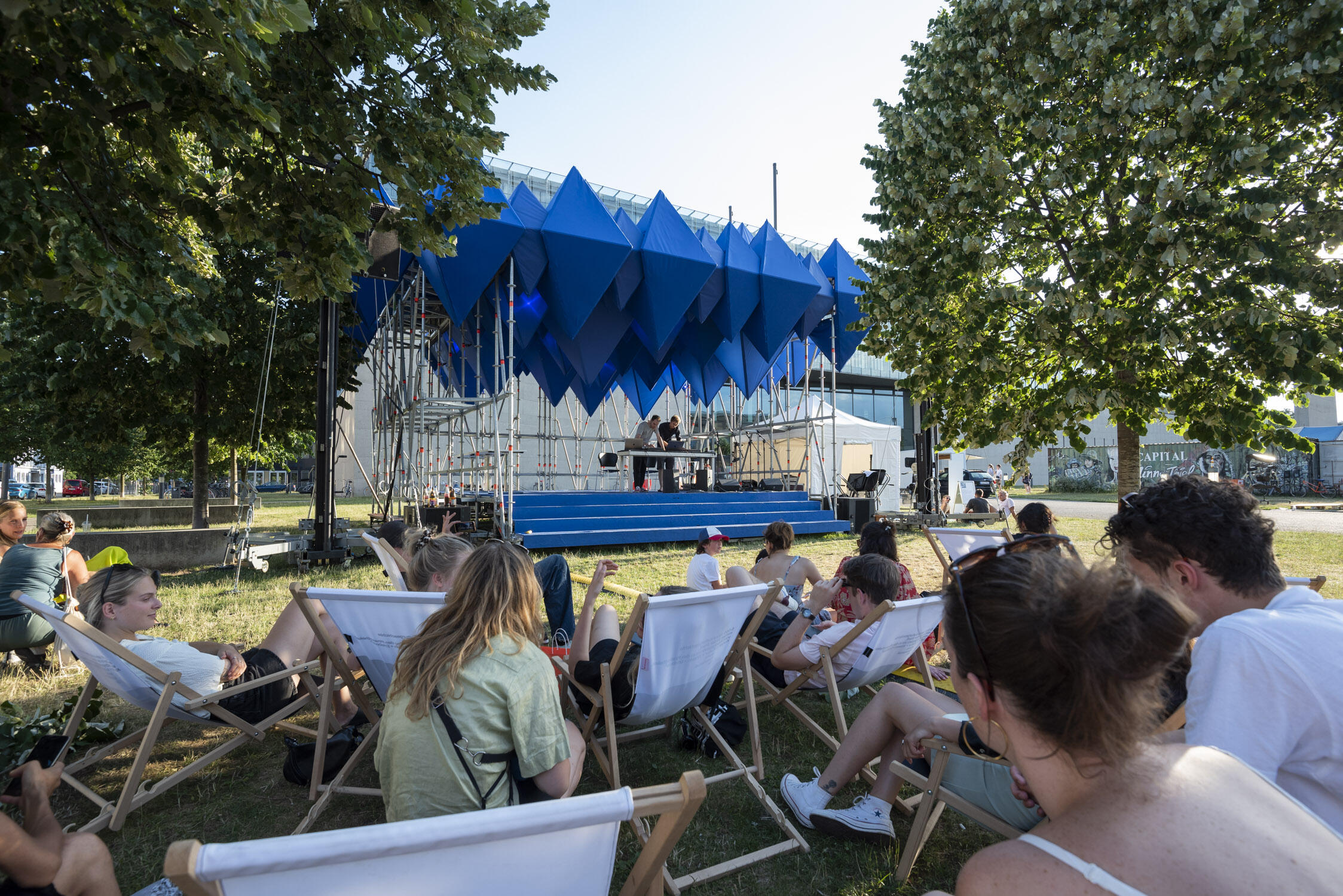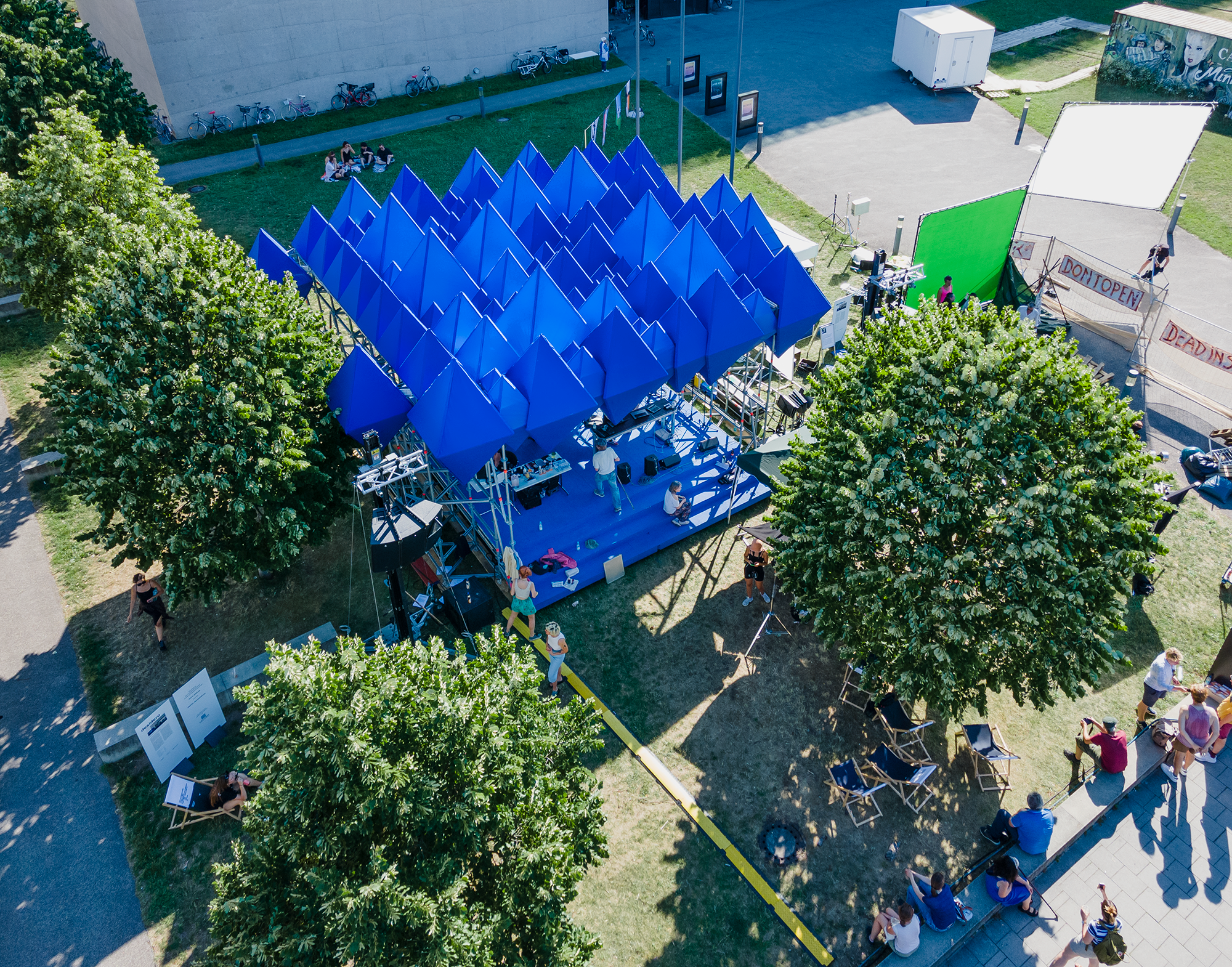 Die drei Münchner Kunsthochschulen – Akademie der Bildenden Künste (AdBK), Hochschule für Fernsehen und Film (HFF), Hochschule für Musik und Theater (HMTM) – präsentieren sich im Rahmen des Fests im Kunstareal 2023 erstmals gemeinsam und zentral auf einer eigenen Hochschulbühne. Sie steht mitten im Kunstareal direkt an der Gabelsberger Straße vor der Hochschule für Fernsehen und Film.