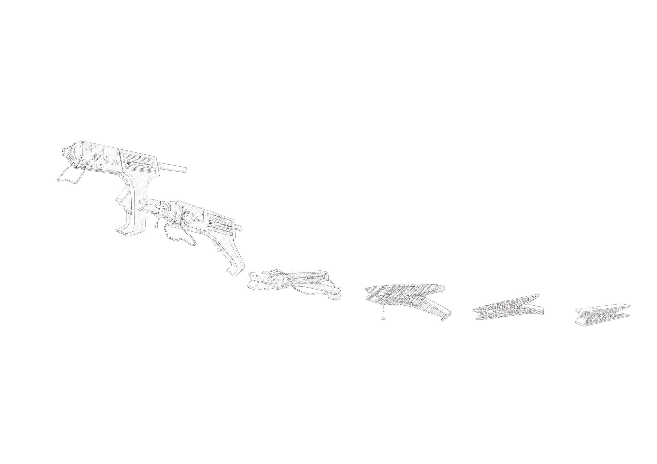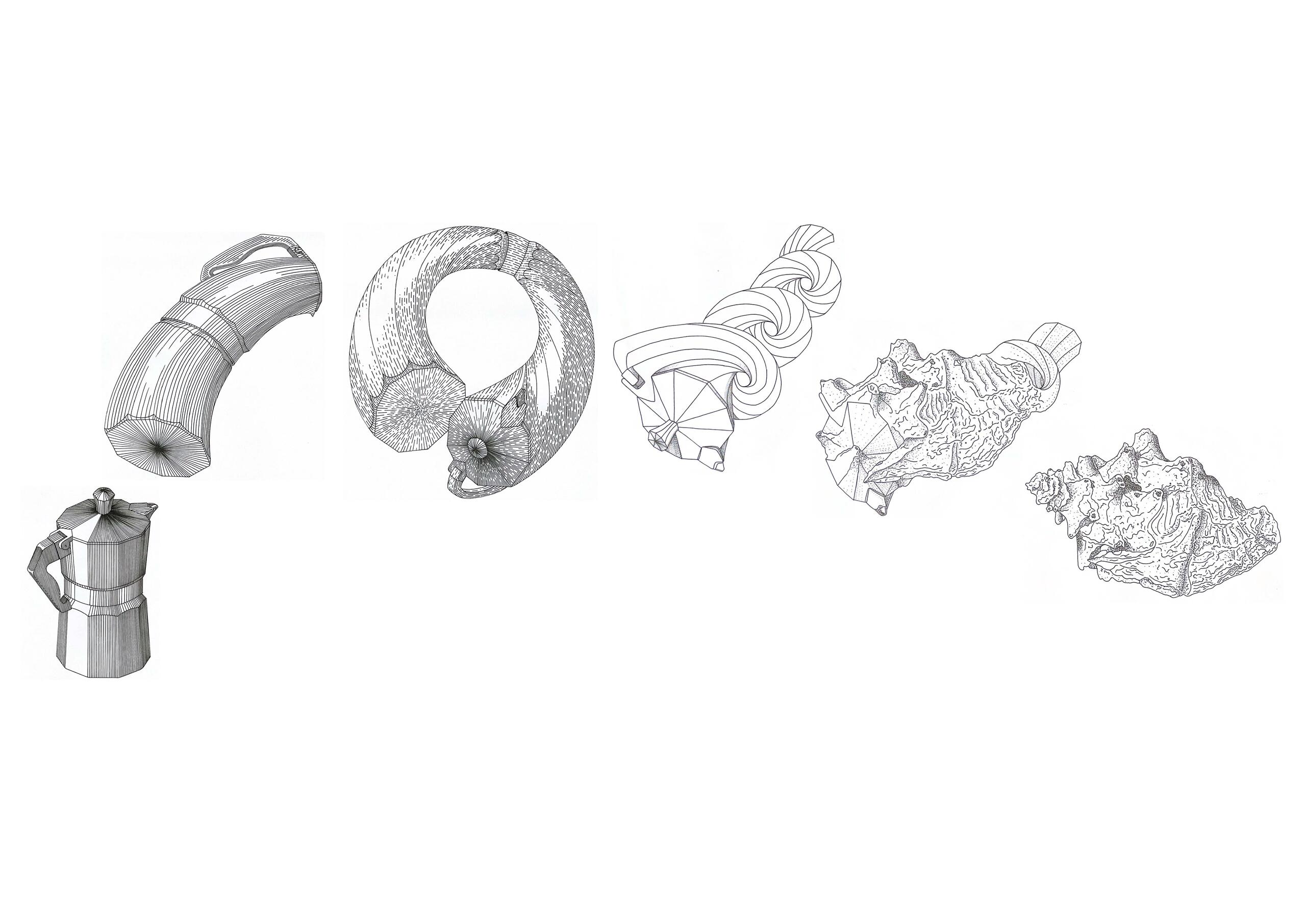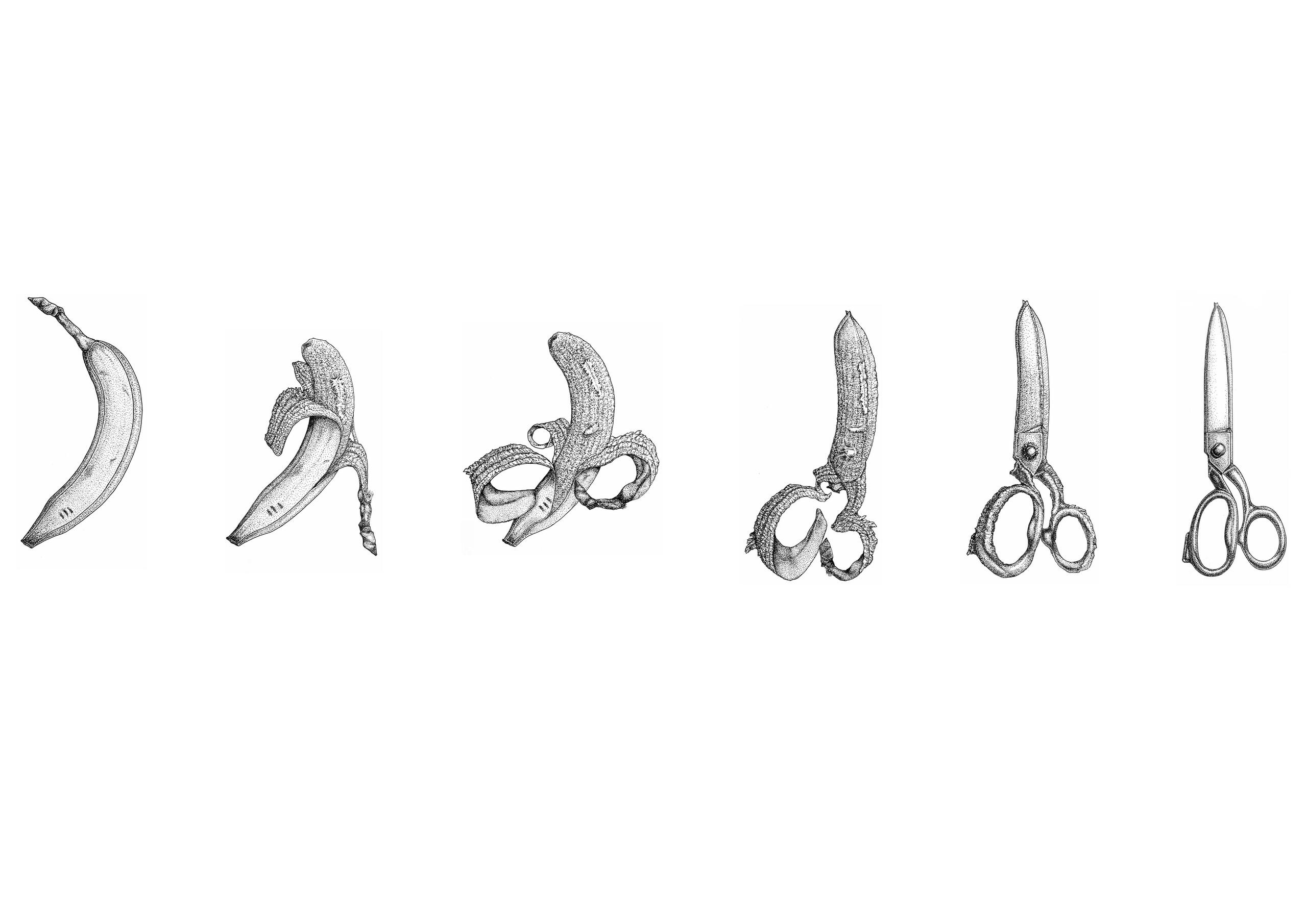 "Mit einer ersten Fingerübung zur Zeichnung von Objekt und Architektur, der Metamorphose eines Gegenstandes, verwandelt sich ein Objekt in mehreren Einzelschritten in ein zweites. Beide Objekte werden im Vorfeld von den Studierenden frei gewählt und zeichnerisch analysiert. Mittels der präzisen zeichnerischen Beobachtung werden vermeintliche Gemeinsamkeiten der Objekte entdeckt, herausgearbeitet und mit einer ausdrücklich erwünschten Prise Kreativität und Humor in den Einzelzeichnungen der Metamorphose gefügt. Sehen, analysieren und beschreiben mit dem Stift am Arm!“