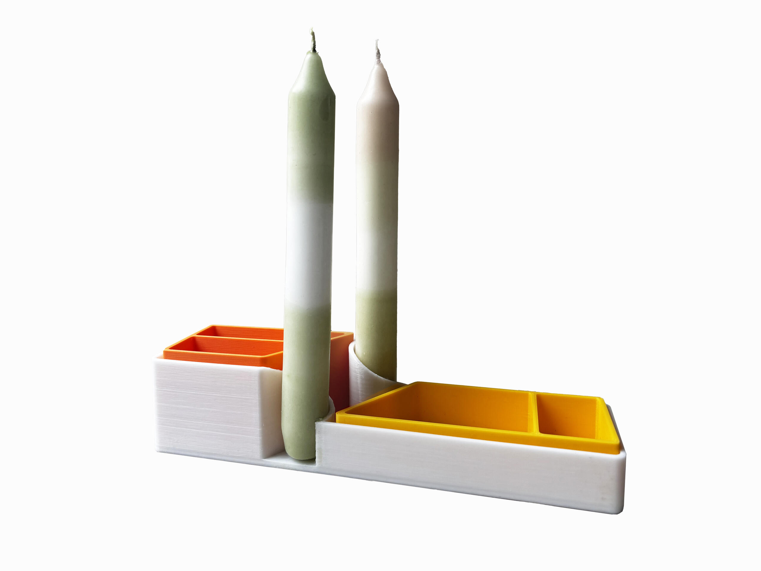 In diesem Projekt haben die Student:innen einen Entwurf eines Kerzenständers erarbeitet. Anwendung, Material und Größe waren frei wählbar. Die einzigen Rahmenbedingungen: die Funktionalität als Kerzenständer und er sollte mehrteilig als Ensemble, Produktfamilie oder modulares System funktionieren.