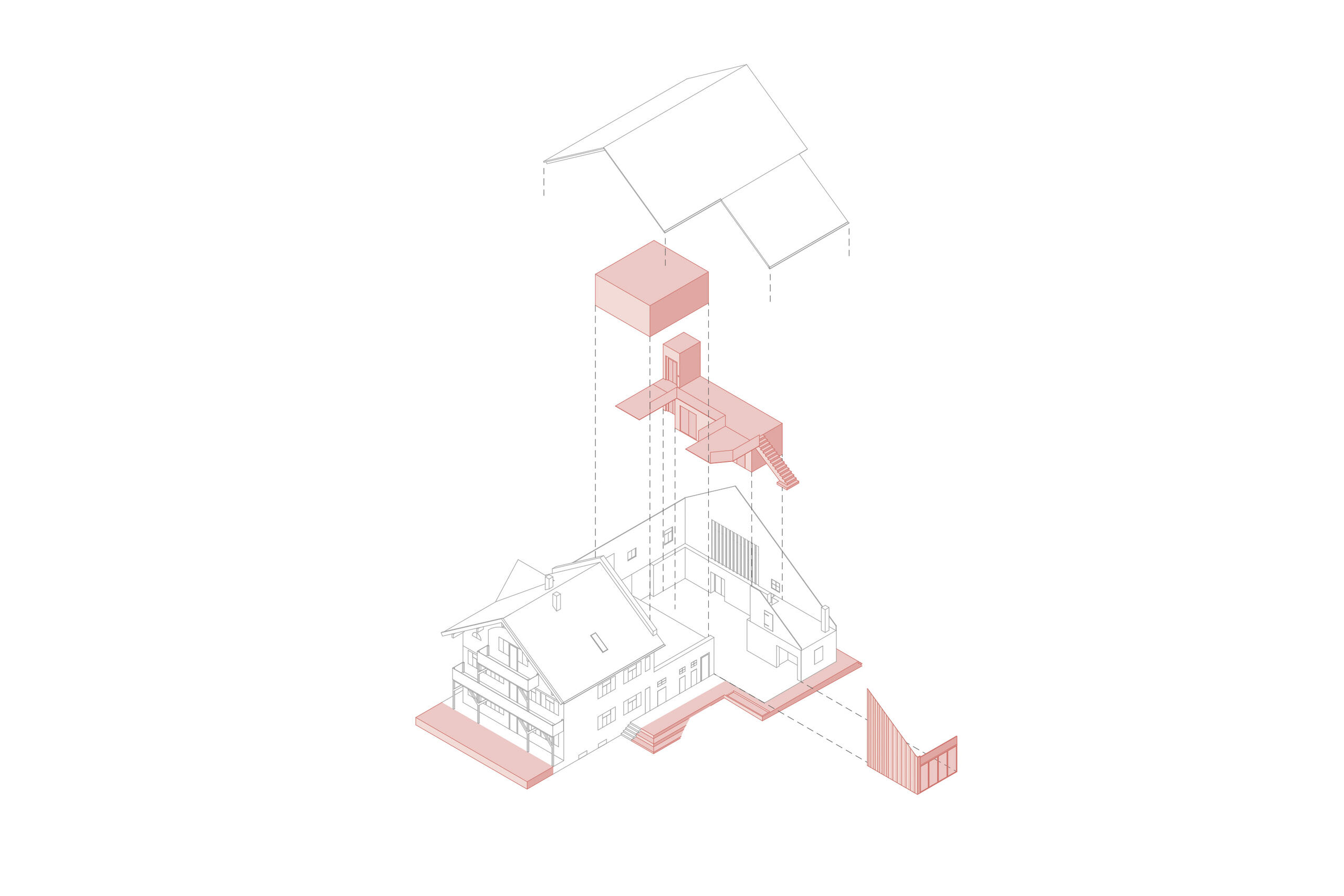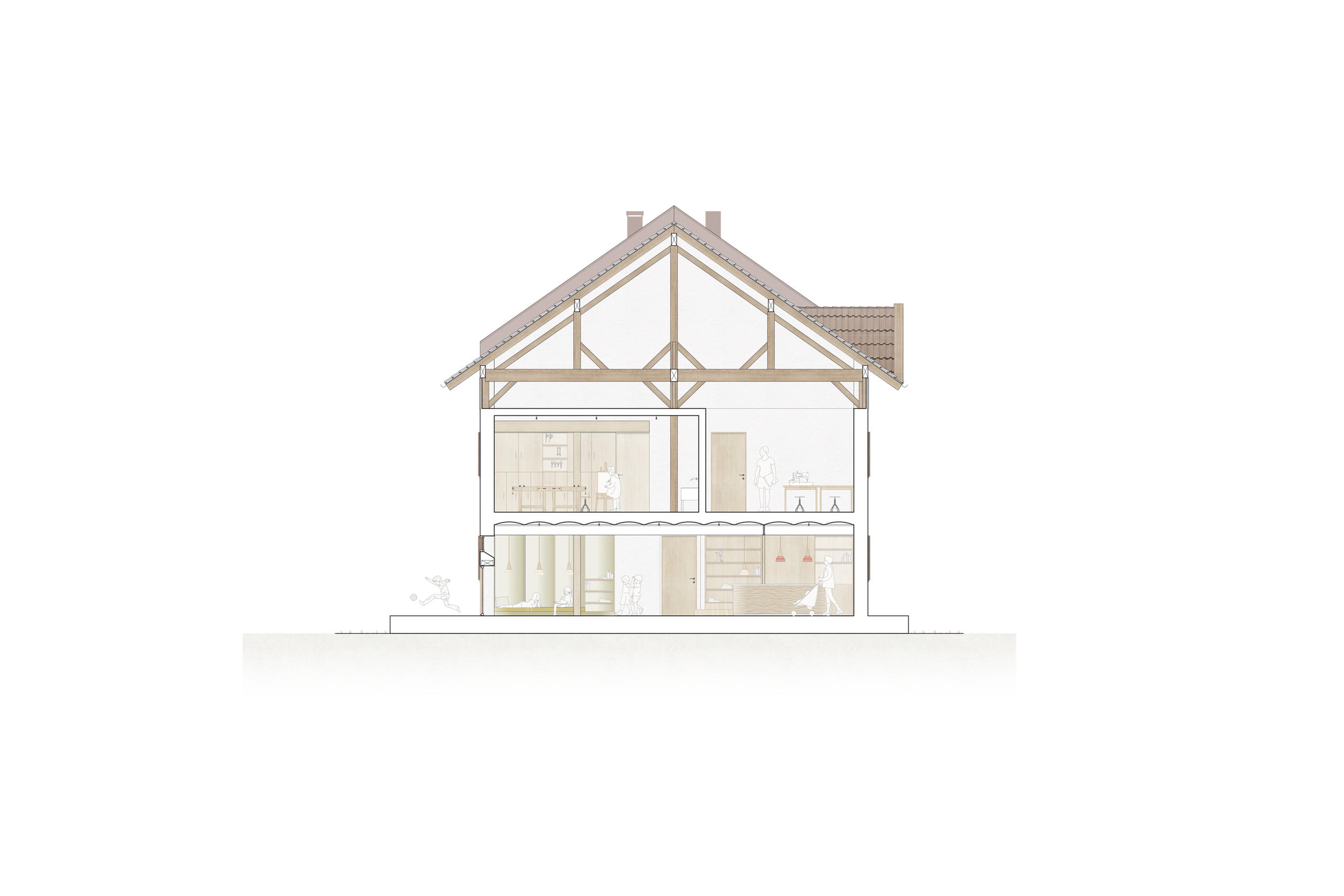 Einem 120 Jahre alten Bauernhaus in Grafing soll im Zuge des Entwurfes neue Beachtung geschenkt werden. Von der ehemaligen Wohnnutzung wird es zu einem Ort der Kinderbetreuung und handwerklicher Begegnungsstätte umgenutzt und öffnet sich so dem Ort.