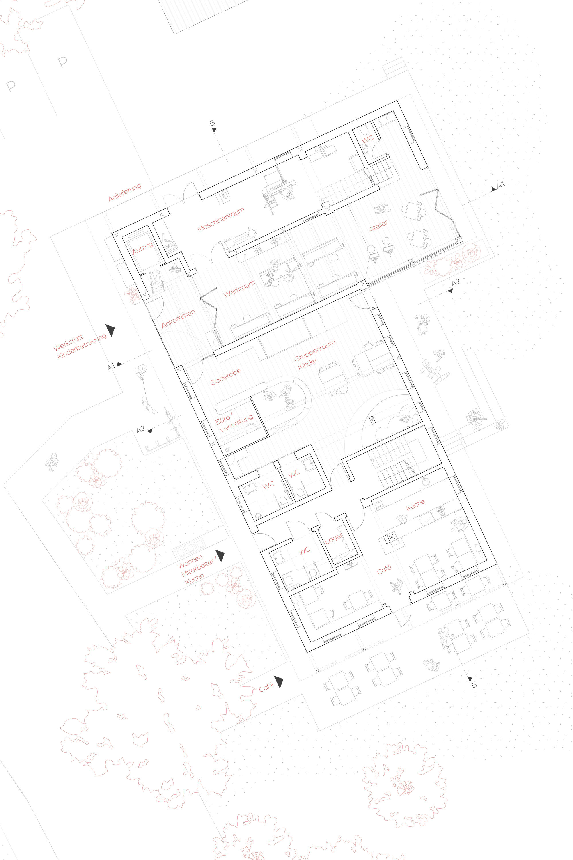 Mit Elterncafés, Veranstaltungsräumen, oder einer Zweitnutzung zum Seniorentreff kann eine Kindertageseinrichtung eine ganze Nachbarschaft prägen. Dabei rücken die Orte der Kinderbetreuung als Bildungseinrichtungen in den Vordergrund. Ebendiese Funktion soll auch die werklerei erhalten.