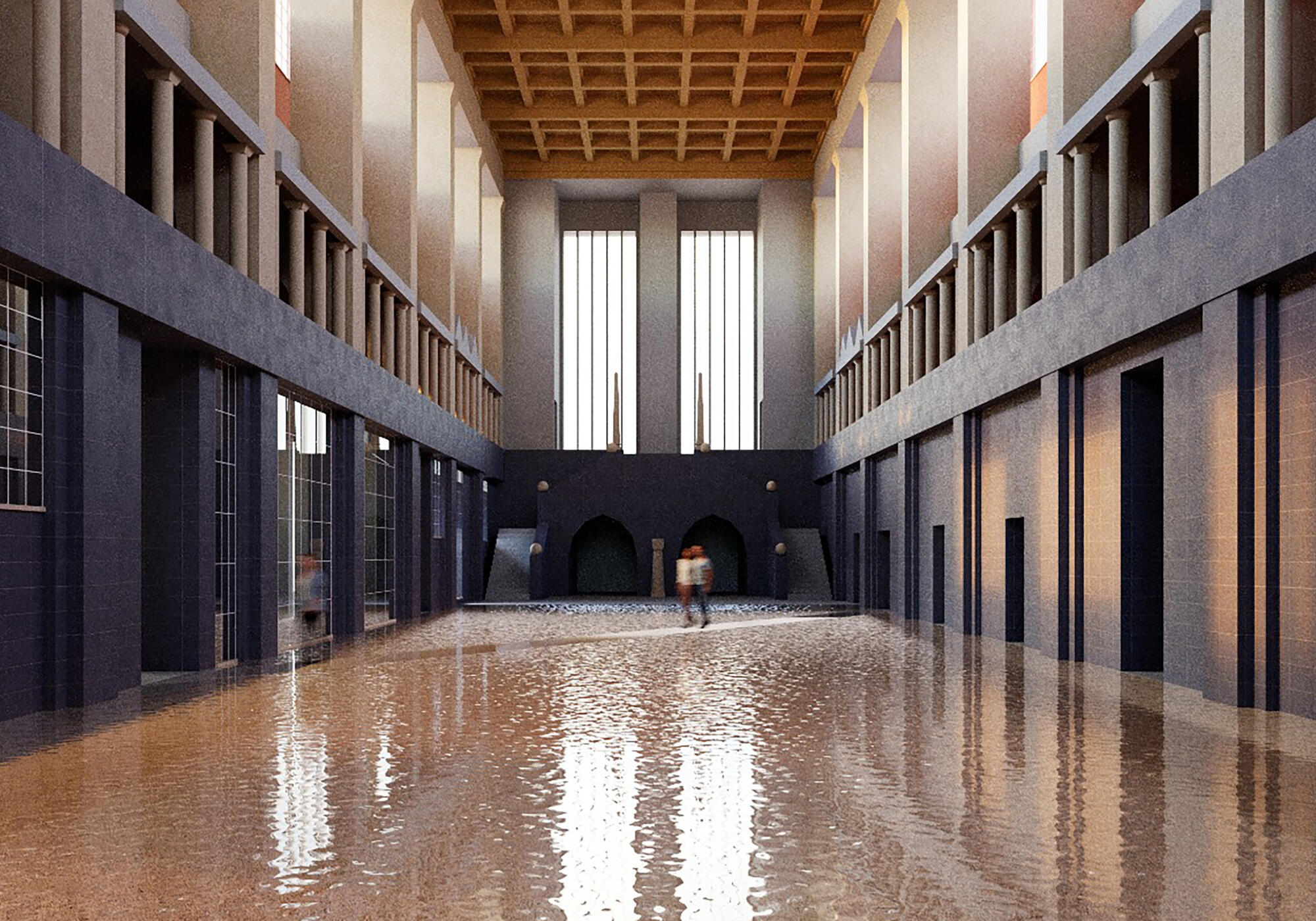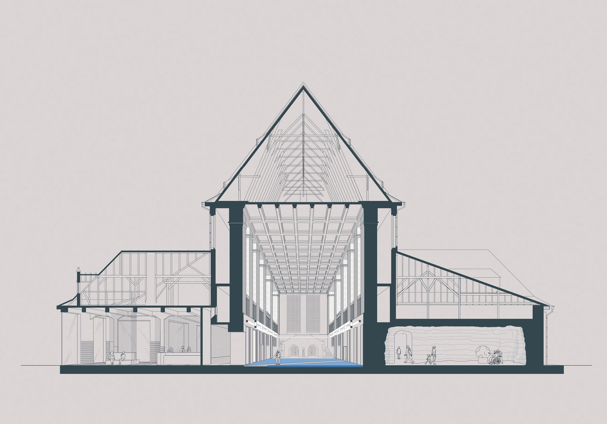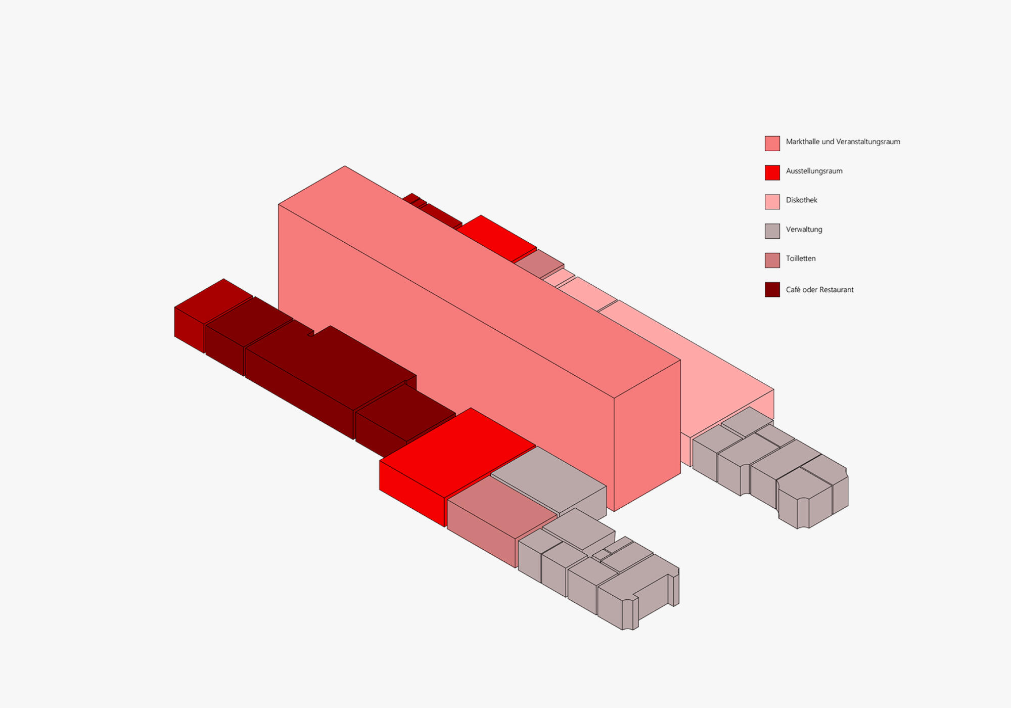 Das Entwurfsprojekt „Ochsenkathedrale“ untersucht Umnutzungsstrategien für den ehemaligen Schlachthof Bad Kissingen, die den Komplex mit in eine flexible und multifunktional bespielbare Veranstaltungshalle verwandelt. Der Bau bietet in seiner Grundstruktur eine zentrale Halle mit zahlreichen angegliederten Räumen in unterschiedlichen Größen, die sich ideal als Nebenräume für Veranstaltungen jedweder Art neuordnen lassen. Hierfür waren eine präzise Analyse des Bestands und der Bedarfe für eine Umnutzung notwendig. Die je nach Veranstaltungsart spezifisch erforderliche Raumorganisation und die Abläufe von unterschiedlichen denkbaren Veranstaltungsszenarien mussten genau untersucht und durchdacht werden, um Raumfolgen sinnstiftend zu organisieren und deren Dimensionen stimmig zuzuordnen. Es galt zudem die historische Dimension des Baus zu durchdringen und zu klären. Welche Haltung steht hinter dem Bau und was soll dieser zukünftig ausstrahlen? Rund um die Frage "Wie werden sich Alt und Neu begegnen?“ sollten Konzepte für eine Neuordnung hergeleitet, erarbeitet und präsentiert werden.