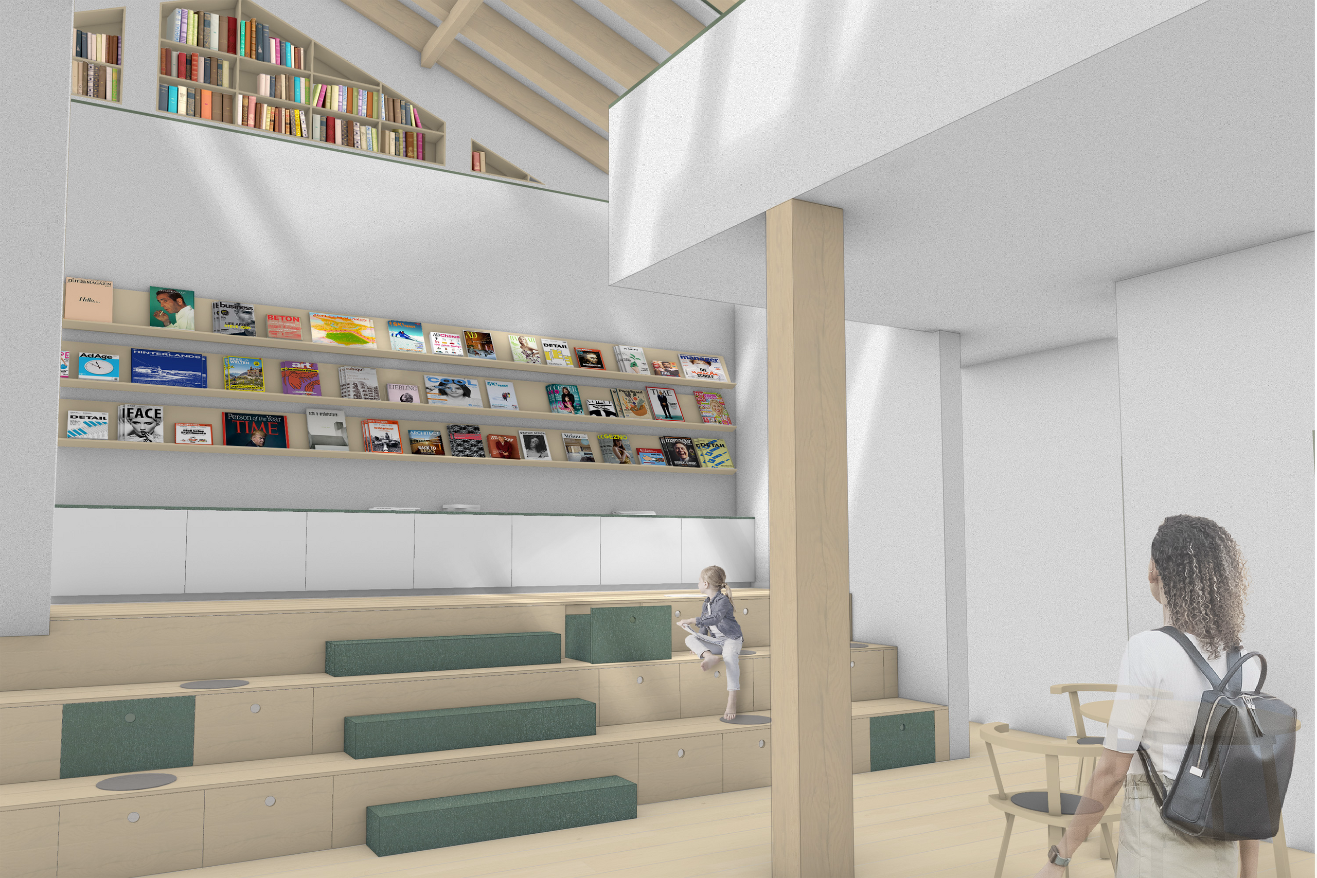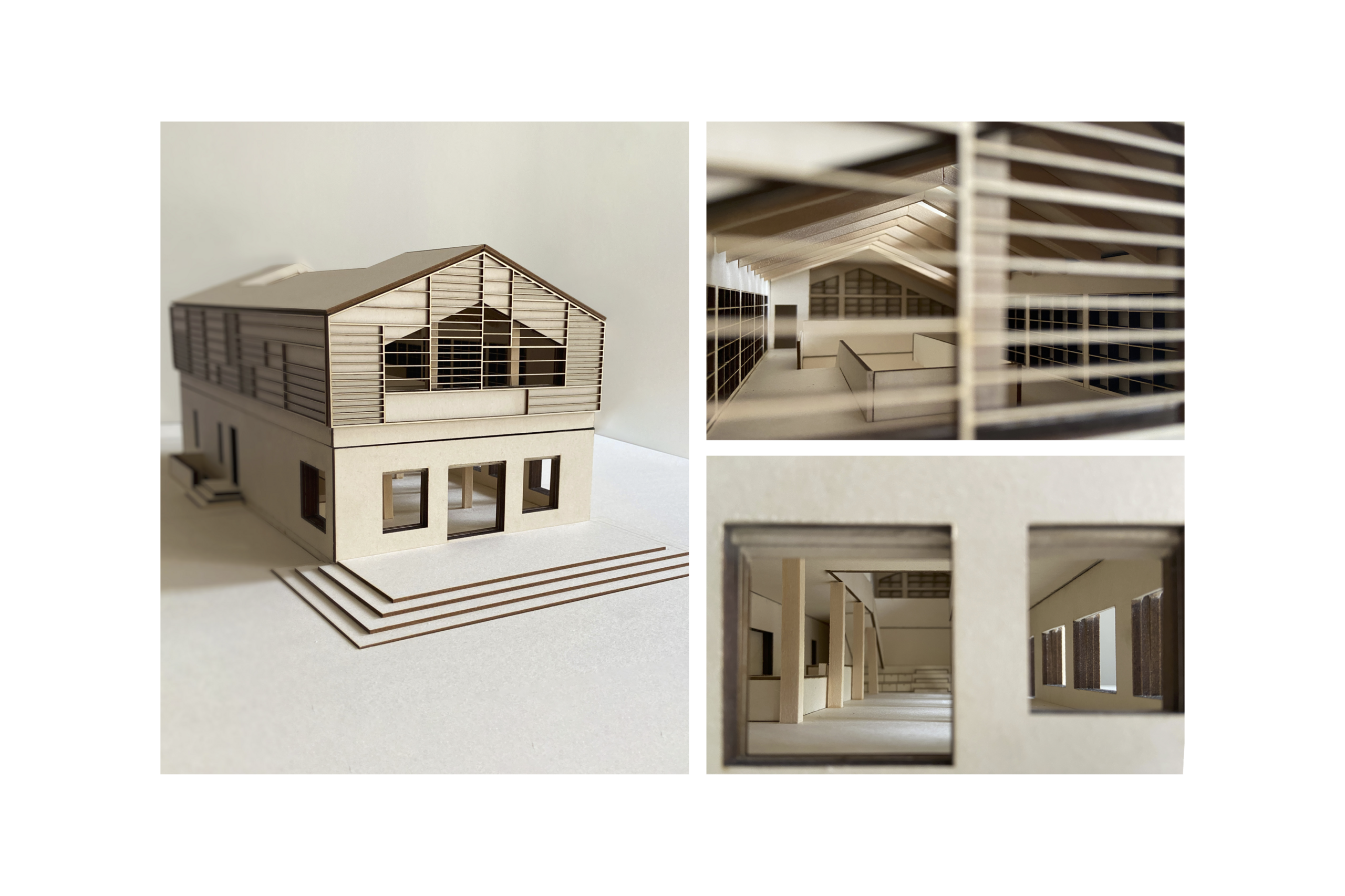 Die Revitalisierung eines Bestandsgebäudes im Herzen der alpenvorländischen Gemeinde Krün zielt darauf ab, die kulturelle und architektonische Identität der Region zu stärken. Das Konzept der Schmökerei vereint eine Bibliothek und ein Café, um sowohl die lokale Bevölkerung als auch den Tourismus anzusprechen. Eine klare horizontale und vertikale Strukturierung des Gebäudes in Kombination mit einer offenen Raumgestaltung ermöglicht eine schnelle und mühelose Orientierung. Das Zusammenspiel funktionaler und ästhetischer Elemente schafft eine inspirierende Umgebung, welche die Neugier weckt und die Besucherlnnen dazu ermutigt, die vielfältigen Nutzungsbereiche des Gebäudes zu erkunden. Die Verwendung dezenter Farbtöne und traditioneller Materlalien erzeugt ein harmonisches Zusammensplel zwischen Büchern, Besucherinnen und Architektur. Es entsteht eine stimmige Atmosphäre, die gleichermaßen das Lernen und die Entspannung fördert. Ländliche Motive werden auch in der Fassade neu interpretiert, wodurch sich das Gebäude trotz Umnutzung und Neugestaltung harmonisch in das bestehende Ortsbild integrert.