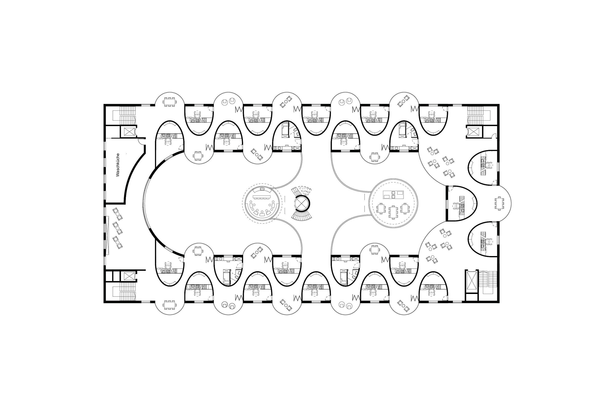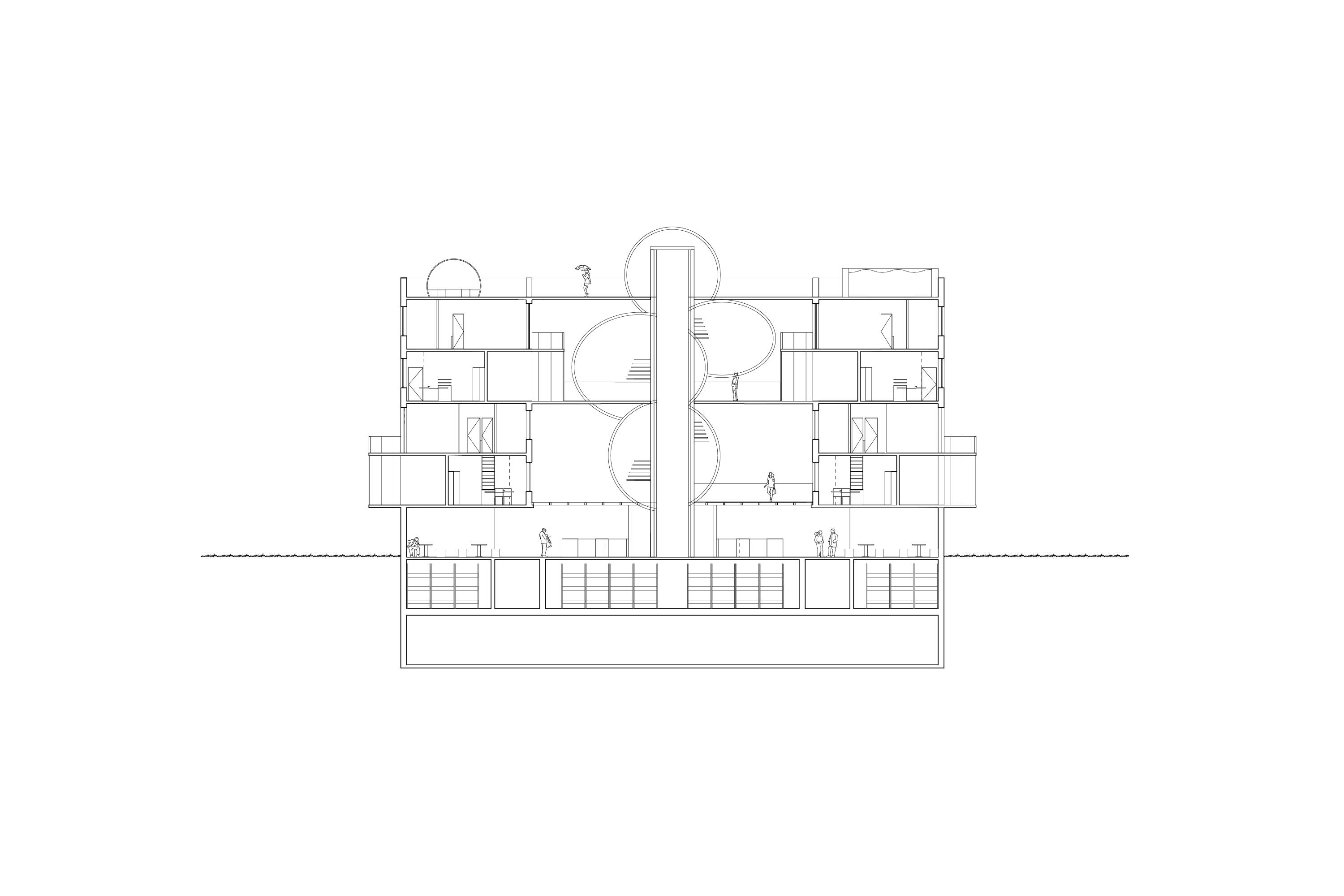 Im Entwurf „The Ant House“ für die Umnutzung eines alten Bürogebäudes in gemeinschaftliches Wohnen, lässt sich Alicia Waibel von den Strukturen und Prinzipien eusozialer Tiere inspirieren. So schafft sie ein gemeinschaftlichen Wohnkomplex, der eine besondere Stärke in generationenübergreifenden Synergien und einem großzügigen Angebot an unterschiedlich nutzbarer gemeinschaftlicher Fläche bietet.